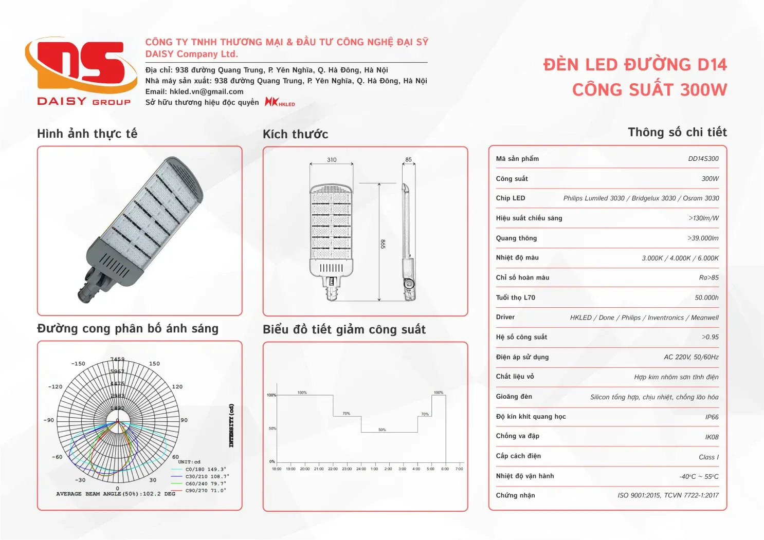 Đèn LED đường phố D14 chip LED SMD – Công suất 300W