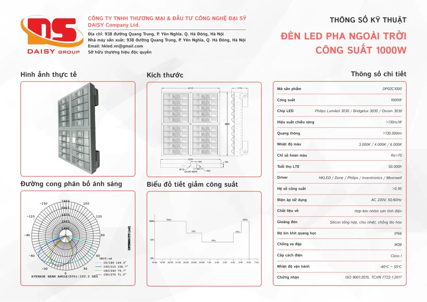 • Tuổi thọ L70: 50.000h
